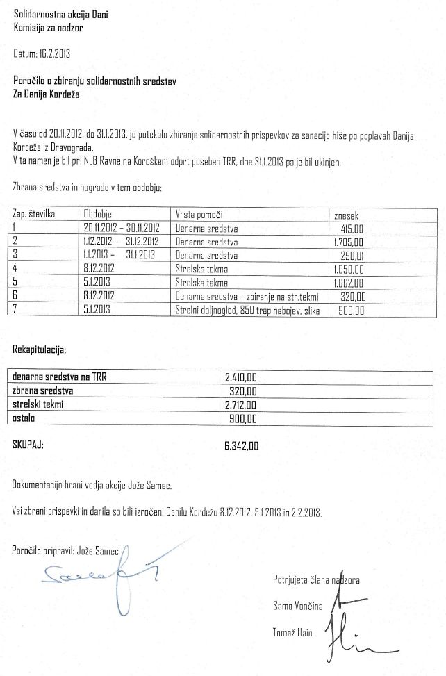 Poročilo 100 nabojev za nov začetek Poročilo ob zaključku akcije Finančno poročilo o zbranih sredstvih v akciji 100 nabojev za nov začetek s katero smo pomagali lovskemu in strelskemu tovarišu Daniju. < Nazaj Naprej >