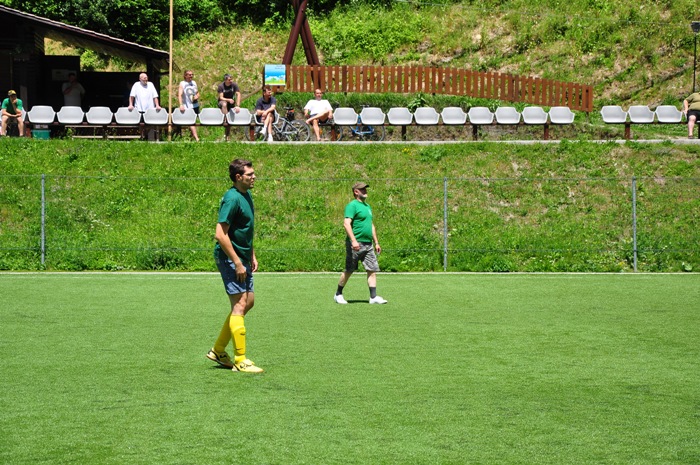 Po postavitvi zastav smo tekmo seveda z zamudo začeli. Na igrišču smo se znašli en igralec gorenjske ekipe - Tarfila, sodnik tekme - Veper in jaz kot snemalec. Tekma je bila zaključena s prvo brco žoge in zaradi odsotnosti nasprotnikov zaključena z rezultatom 3 - 0. Vse je bilo seveda dokumentirano kot se šika. Dejstva lahko potrdijo ostali prisotni iz Železnikov, njihove LD in delegat iz Dolenjske - JakaJež s soprogo. Nekaj po tem se je po telefonu javil preostanek gorenjske ekipe, ki je najavljal skorajšen prihod iz Krope. Nedvomno so jemali zalet, kot sem sklepal po nekako poznanih zvokih in muzike, ki asociira na gostinske lokale. Vest o že dobljeni zmagi smo jim seveda povedali šele ob prihodu na igrišče.
