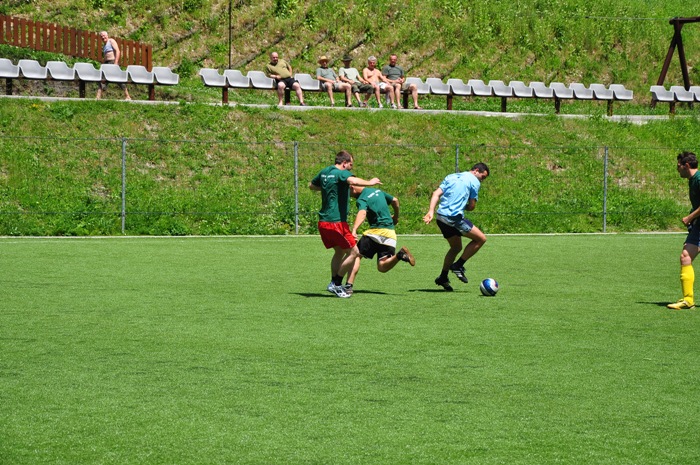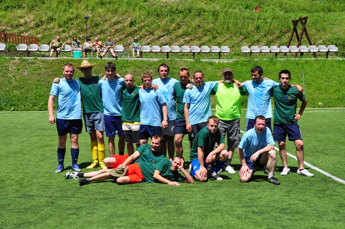 A taka zmaga je grenka in ker so gorenjci znani po borbenosti, brez česar bi seveda težko preživeli v njihovih sicer lepih a nekako čudno navzgor obrnjenih krajih, so privolili, da se kljub vsemu s štajerskimi fazani spoprimejo, če se le ti ne bodo dokončno izgubili na poti. In glej čudo, štajercem je uspelo zaviti v pravo dolino in so čez čas na prizorišče pompozno tudi pridrveli. Po prisrčnem pozdravljanju in preoblačenju, se je obračun pri OK Sori začel.