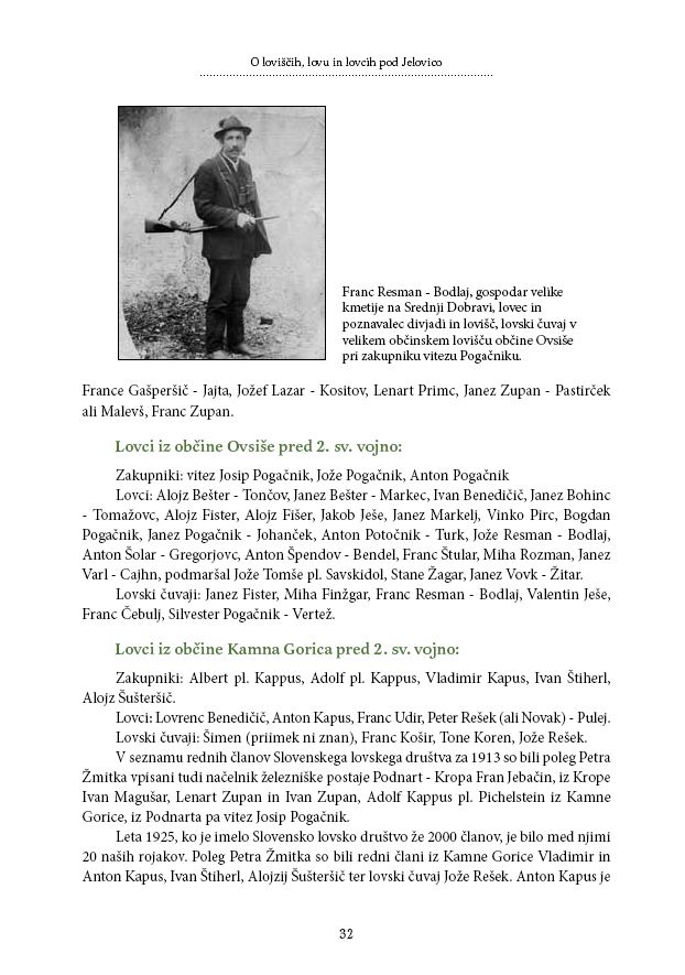 Pred 2. sv. vojno Lovci pred 2. svetovno vojno Odlomek iz knjige O loviščih, lovu in lovcih pod Jelovico < Nazaj Naprej >