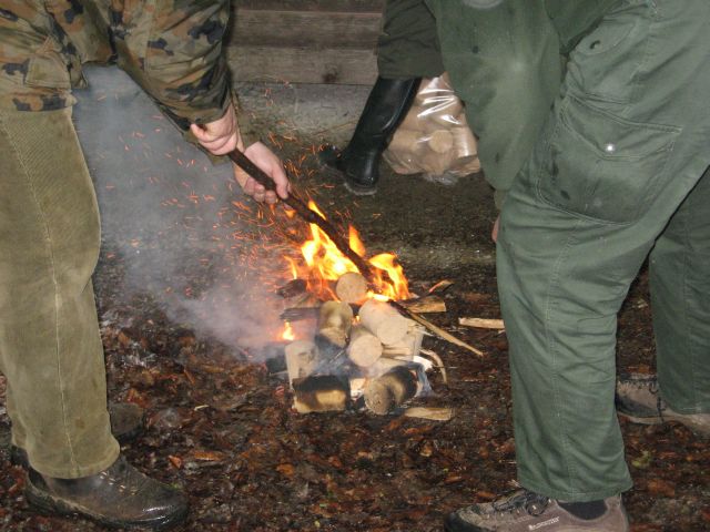 Ja dobesedno v dimu. Streljalo se je namreč z nekakšne preže, ki je v sami baraki in jo imajo lokalni lovci postavljeno za posebne priložnosti. Če pa zraven barake zakuriš ogenj se dim veselo kadi ravno na prežo. Zanimiva zadevca, ki pa je navdušila vse. Ja in veš Bober, ko so pravi prijatelji izpolnili dolžnost do svojih LDjev in odpokali izbirna tekmovanja drugje so prišli in odstreljali še tvojo tekmo. »Da bi zamudil forumsko tekmo?? To bi bilo bogoskrunje« je rekel Ciril in kasneje kot nagrado za prvo mesto v kombinaciji odnesel prekrasno sliko merjasca. Ja letos je bila le prva nagrada zares bogata vse ostalo pa pač priročno in kar se je pač našlo. Tukaj se je še posebno izkazal ZR7 saj je imel pri polovici nagrad zraven vsaj prste, če že ne cele roke. No tudi Trgovina Truden, Srna doo, in nekaj prijateljev je prispevalo po zmožnostih.