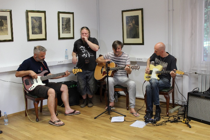 Podpredsednikovemu uvodnemu nagovoru je sledila točka glasbene skupine DOBR JOKE, ki jo sestavljajo vrhunski glasbeniki, eden med njimi je tudi Milanov sin Grega Samar. Družbo mu delajo Nermin Puškar, Kristijan Kalaba in Damir Jazbec. Vsi že vrsto let ustvarjajo na glasbeni sceni, v tej zasedbi pa jih druži želja po preigravanju starih uspešnic. S svojevrstno aranžiranimi pesmimi so obiskovalce razstave popeljali v drug svet, daleč stran od navadnega vsakdana, v galerijske prostore, napolnjene s pretežno arhaičnimi motivi, pa so vnesli svežino, pridih modernega in dinamiko, saj so se skoraj vsi zbrani narahlo pozibavali v bokih ali vsaj tapkali z nogo ob tla. Tudi člani skupine so se prestavili v drug svet, v katerem je vse podrejeno zakonom glasbe, in videti je bilo, kot da neskončno uživajo.