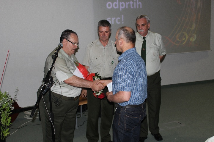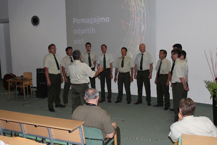 Nato sta predsednik Zveze lovskih družin Novo mesto Franc Jarc in strokovni tajnik Stane Gabrijel prišla povedat, da so na dobrodelnem koncertu zbrali 2.080 evrov. Družini sta tako prejeli vsaka kuverto s 1.040 evri. Predstavnika obeh družin sta s hvaležnostjo prevzela zbrani denar. Sledila je podelitev priznanj nastopajočim, ki jo je Stane Gabrijel pospremil z naslednjimi besedami: »Lep, čudovit koncert ste nam pričarali.« Lovski pevski zbori in rogisti so pod vodstvom dirigenta Franca Keneta izvedli še pesem Mi smo lovci. Voditelj se je zahvalil vsem udeležencem dogodka in poudaril, da je danes težko najti nekoga, ki sočloveku stoji ob strani, vsi nastopajoči pa so nato izvedli še nekaj pesmi, ob katerih je občinstvo v dvorani stalo in pripevalo znane melodije.