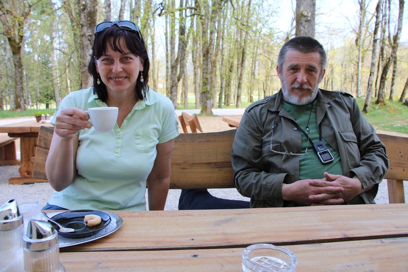 Seveda je potrebno po prevoženi poti najprej privezati dušo, zato smo v lokalu na Pristavi poleg gradu posedli za lesenimi klopmi in ob kavici izdelali plan dela za popoldne. takrat se še nismo zavedali, da se bo delovno popoldne zavleklo skoraj v noč.