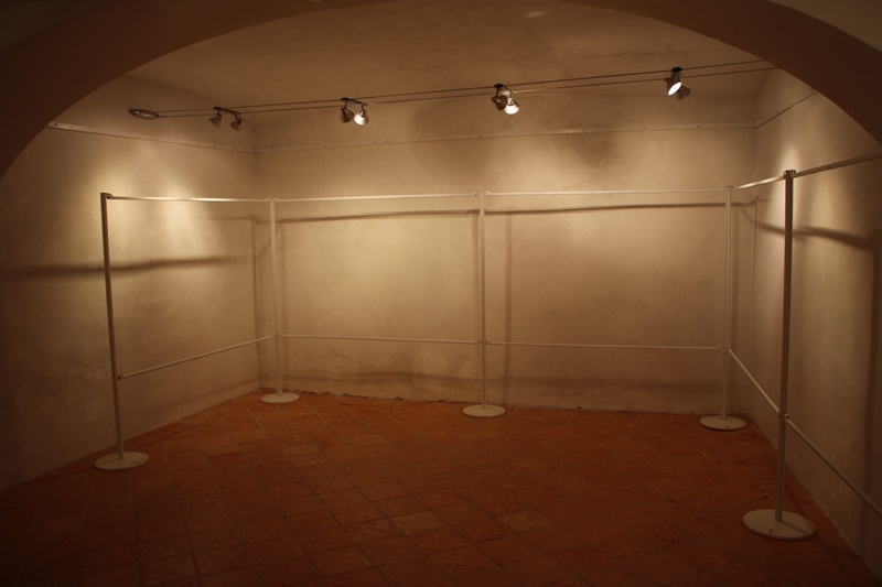 Najprej je bilo potrebno postaviti panele, za katere se ponovno zahvalimo prijatelju in fotografu Matjažu, nakar smo začeli lepiti fotografije na podlage, te pa na plošče.